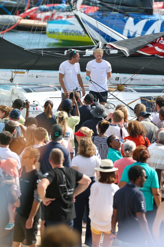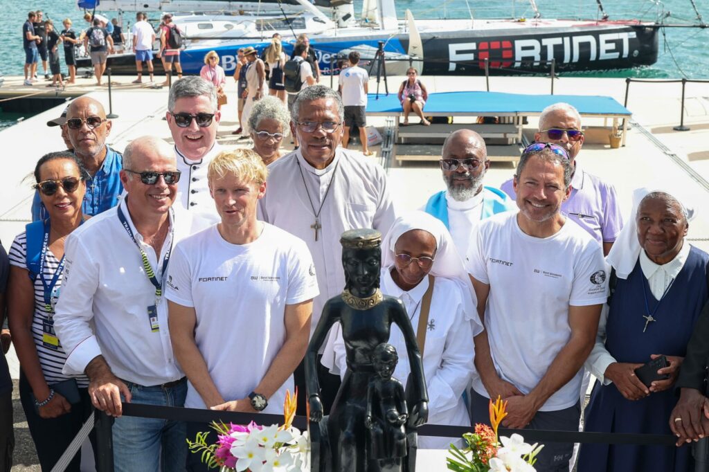 Depuis déjà plusieurs heures, l’église martiniquaise était présente sur le ponton pour accueillir Romain Attanasio et Maxime Sorel, qui avaient accepté de convoyer la statue de la Vierge depuis Le Havre jusqu’aux Antilles.
