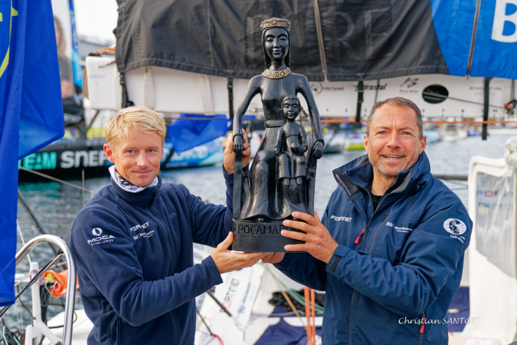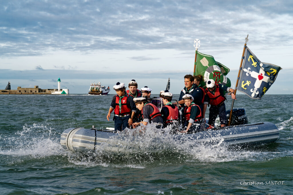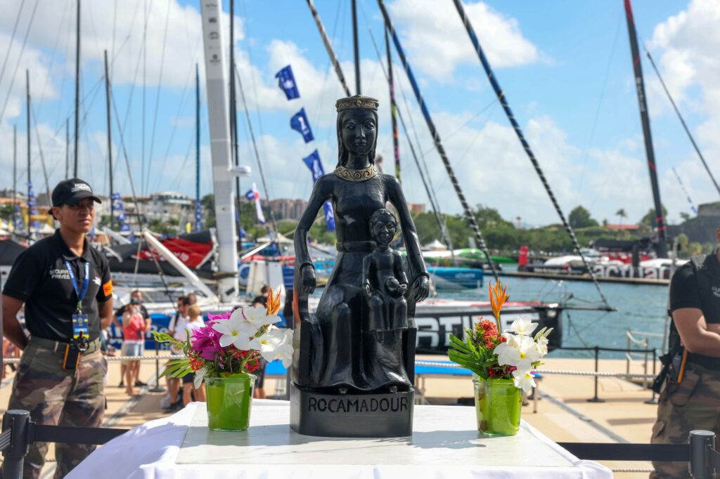 Quelques jours plus tôt, la statue de la Vierge Noire a été amenée jusqu’au ponton d’honneur par les scouts marins du Havre, sur un zodiaque. Elle a ensuite été remise à l’équipage Fortinet-Best Western, qui a été béni ainsi que leur bateau par le Père Célestin, en présence de Pierre-Henri de la Fage, directeur du Sanctuaire de Rocamadour.
